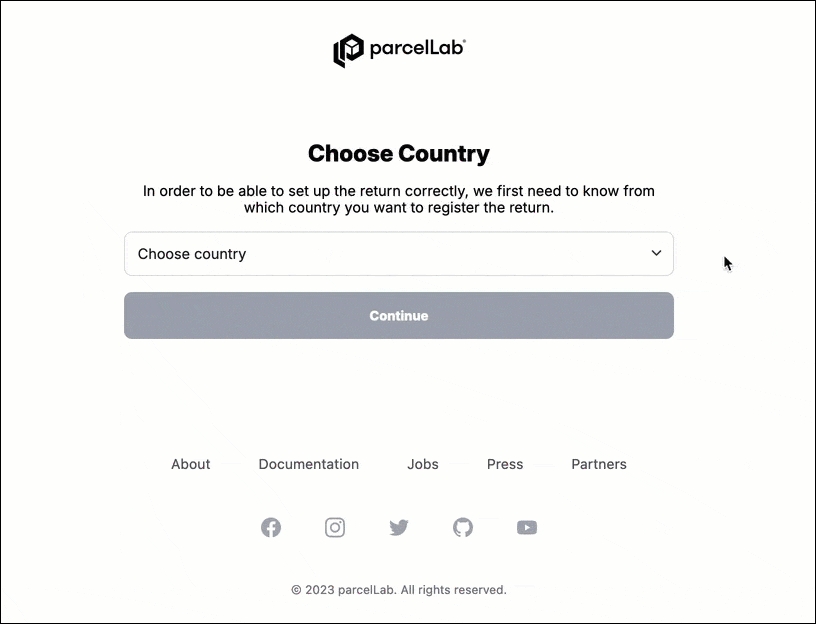 If you have multiple Returns Portals for each country or language, you can add our Returns Portal snippet to a landing page where your customers can select the Returns Portal they need to navigate to. This can simplify the implementation of displaying multiple Returns Portals on your website by reducing the number of pages needed to host each snippet.