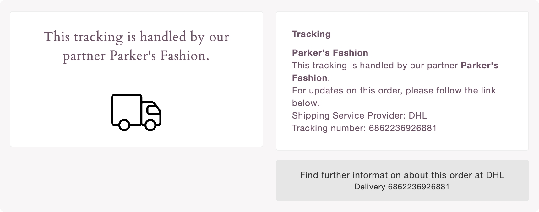 You can now proactively keep customers updated on the latest progress of orders received from a marketplace vendor or dropshipment on the Order Status page. This improves the customer experience by providing the name of the marketplace store handling the tracking and displaying the tracking number and carrier information (including a link to the carrier tracking page) as well if this data is available.